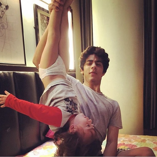 आर्यन और उनके छोटे भाई अबराम की यह तस्वीर देखिये। दोनों भाई जम कर मस्ती करते हैं! इस तस्वीर में भी आर्यन का फेसकट पापा की तरह है।