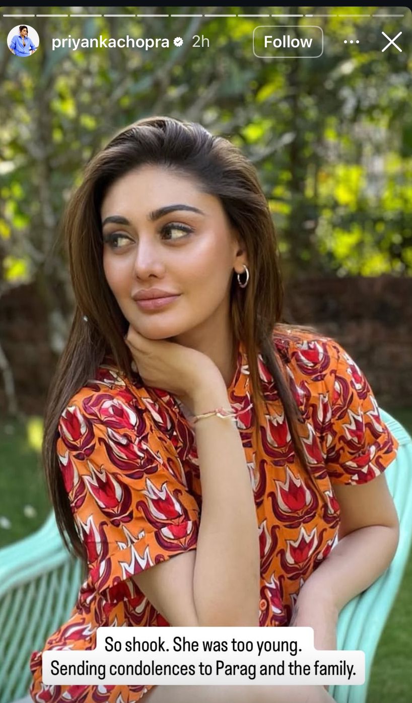 27 जून की देर रात कार्डियक अरेस्ट की वजह से शेफाली जरीवाला का निधन हो गया। वह सिर्फ 42 साल की थीं और ऐसे में उनकी अचानक मौत ने हर किसी को शॉक कर दिया है। इस मामले को लेकर प्रियंका चोपड़ा ने भी अपना रिएक्शन दिया है और ऑफिशियल इंस्टाग्राम हैंडल पर स्टोरी में कांटा लगा गर्ल की एक तस्वीर शेयर करते हुए लिखा है-
