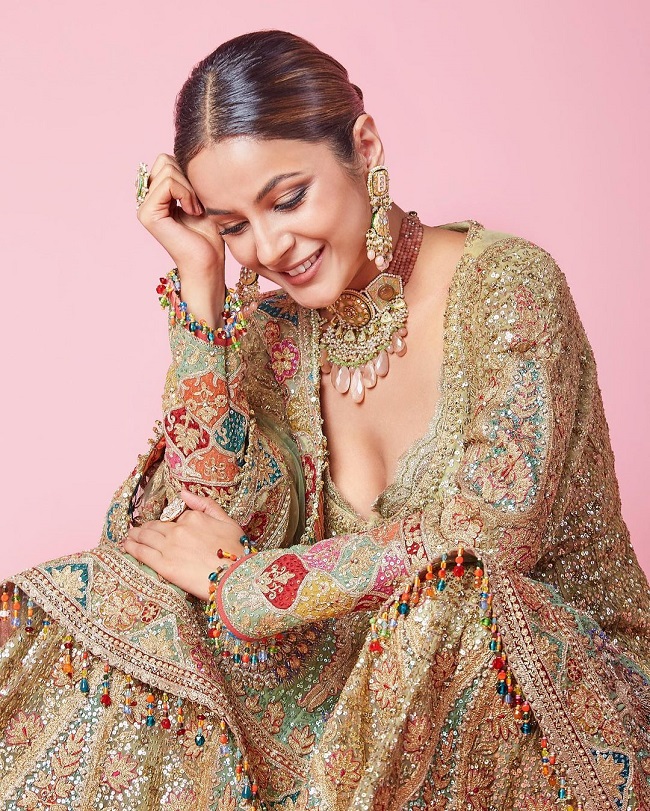 शहनाज गिल ने हैवी ज्वेलरी भी पहन रखी है