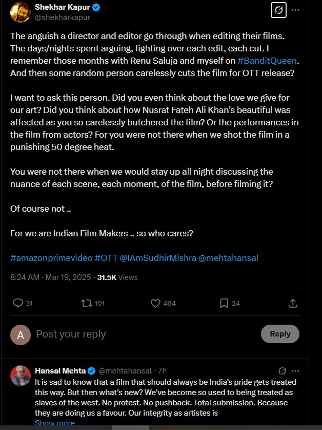 Shekhar Kapur की नारजगी के बाद Bandit Queen पर आया हंसल मेहता का रिएक्शन, सीन काटने को बताया गलत