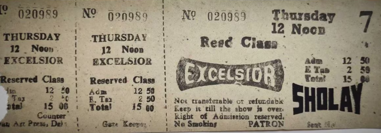 हिंदी सिनेमा की एवरग्रीन फिल्म 'शोले' मराठा मंदिर में तकरीबन 20 यानी कि 1009 हफ्तों तक चली थी। 1975 में जब ये फिल्म आई थी, उस समय मुंबई के मिनर्वा सिनेमाघर में मूवी पांच साल तक लगातार चली थी। 'शोले' के पचास साल पूरे होने से पहले सोशल मीडिया पर 1975 में जो टिकट बिकी थी, उसकी एक फोटो वायरल हो रही है।