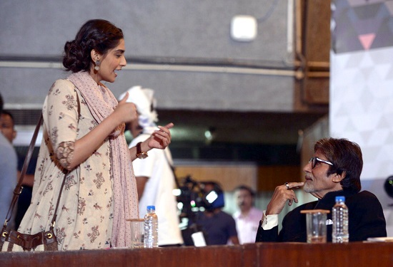 फोटो में आप देख सकते हैं कि फिल्म में मुख्य भूमिका निभा रही एक्ट्रेस सोनम कपूर और अमिताभ बच्चन दिख रहे हैं।