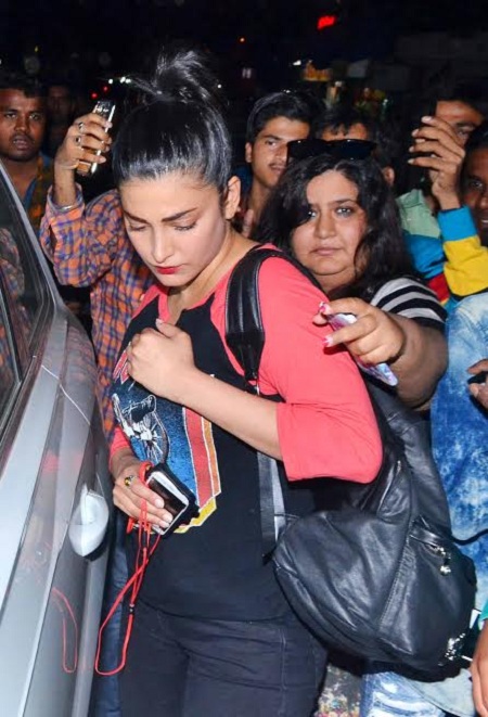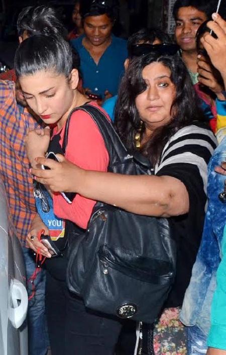इन्हीं तस्वीरों में आप देखिये श्रुति कितनी परेशान दिख रही हैं। वो बस इस भीड़ से किसी तरह बच कर बाहर निकल जाना चाहती हैं।