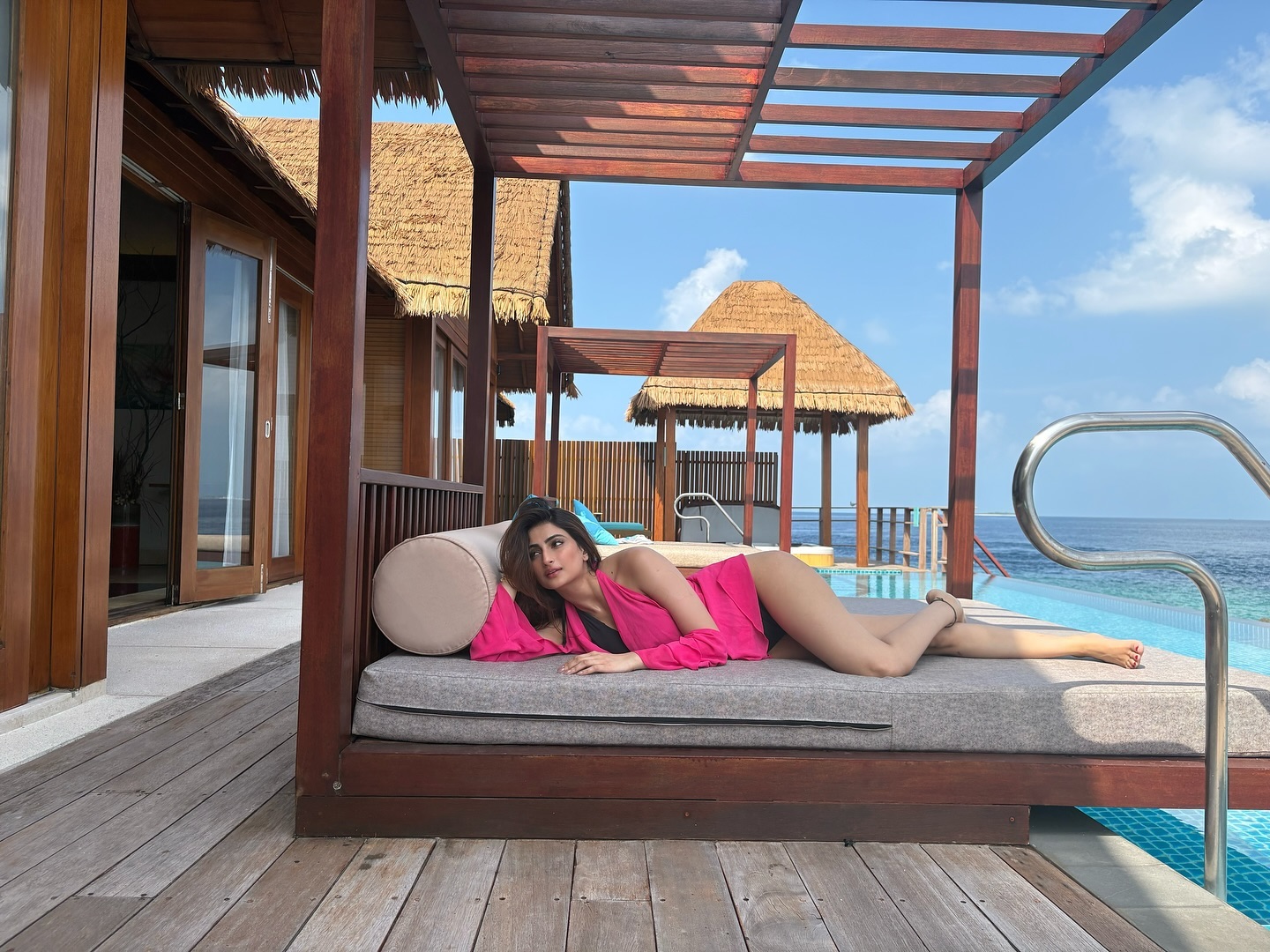 तस्वीरों में पलक ब्लैक बिकिनी में पोज देती नजर आ रही हैं, जिसे उन्होंने मैचिंग बॉटम और सेरॉन्ग के साथ पेयर किया है। उनका फैशन गेम हमेशा टॉप पर रहता है।