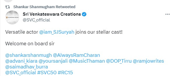 हालांकि, अपने इस नए पोस्ट के साथ निर्देशक ने ये नहीं बताया कि उनकी फिल्म की आगे की शूटिंग कितनी तारीख से शुरू होगी। इस फिल्म से राम चरण और कियारा आडवाणी कुछ स्टिल्स पहले ही अपने फैंस के साथ शेयर कर चुके हैं।