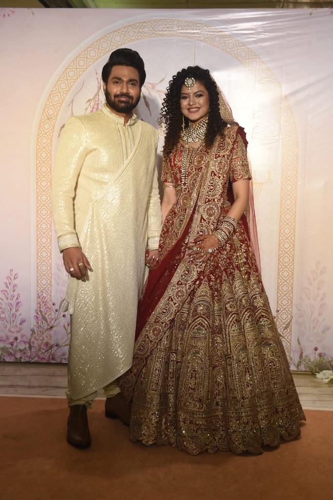 नई दिल्ली, जेएनएन। Palak Muchhal Mithoon Wedding Photos: पलक मुच्छल और मिथुन ने शादी कर ली है। दोनों की शादी की तस्वीरें सोशल मीडिया पर वायरल हो रही है। पलक मुच्छल ने जहां लाल और गोल्डन कलर का बना हुआ ड्रेस पहन रखा है। वहीं मिथुन स्टाइलिश कुर्ता पजामा पहने नजर आए।