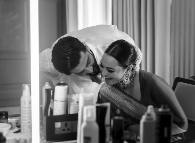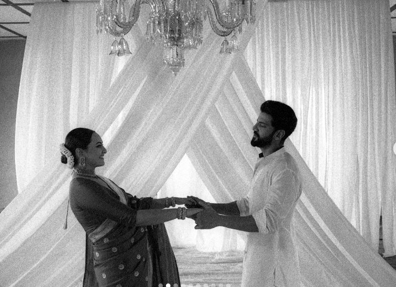 इसके अलावा सोनाक्षी ने शादी की तस्वीरों के पीछे की कहानी भी शेयर की है। उन्होंने लिखा, "पहली और दूसरी फोटो में फिल्मी होना और अपना खुद का संगीत बनाना (2017 से), यहां अपनी शादी की तस्वीरें क्लिक करवाने के बीच में। पहली फोटो अब मेरा वॉलपेपर है।"