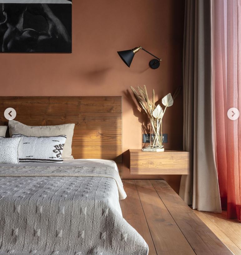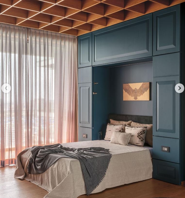 सोनाक्षी सिन्हा का मास्टर बेडरूम देख आपके होश उड़ जाएंगे। उन्होंने अपने बेडरूम में मर्फी बेड लगवाया है, जो वॉल से अटैच होता है। एक्ट्रेस ने मर्फी बेड एरिया को डार्क ब्लू कलर में रखा है। उनके घर में एक और बेडरूम है, जिसे लकड़ी के टेक्स्चर में बनाया गया है और पेस्टल ऑरेंज में दीवार का इंटीरियर किया गया है।