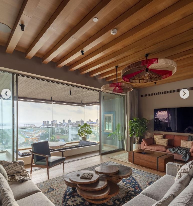 सोनाक्षी के घर का लिविंग एरिया बालकनी से अटैच है, जिससे मुंबई का एक सुंदर नजारा देखने को मिलता है। एक्ट्रेस ने अपने लिविंग रूम को कुर्सियों की जगह ग्रैंड काउच और सेंटर राउंड टेबल से सजाया है और चारों ओर गमले रखे हैं।