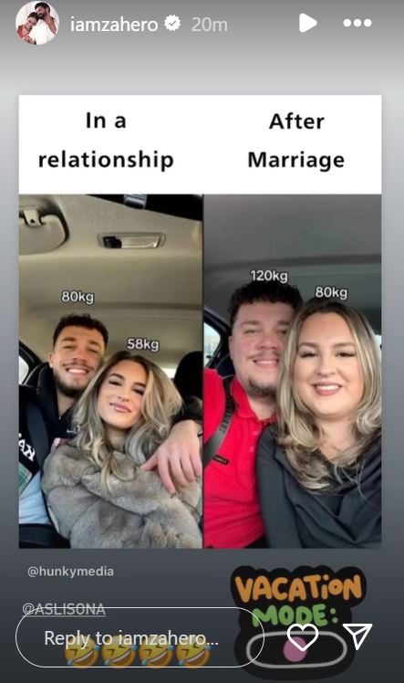 उन्होंने एक मीम शेयर किया है, जिसके एक साइड में शादी से पहले कपल पतला और शादी के बाद कपल मोटा दिख रहा है।
