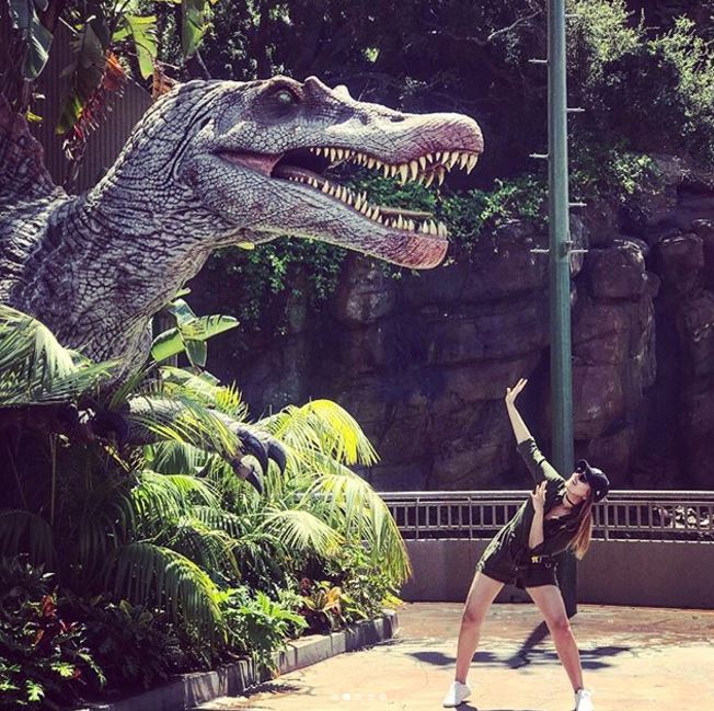 इस स्टूडियो में जुरासिक पार्क भी बना हुआ है और देखिये कैसे डायनोसोर से डर रहीं हैं सोनाक्षी।
