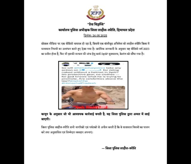 इसको लेकर अब हिमाचल प्रदेश की लाहौल पुलिस अलर्ट मोड पर आ गई है और अभिनेता के खिलाफ कानूनी कार्रवाई का एलान कर रही है। जिसको लेकर प्रशासन की तरफ से एक पोस्ट शेयर किया है।