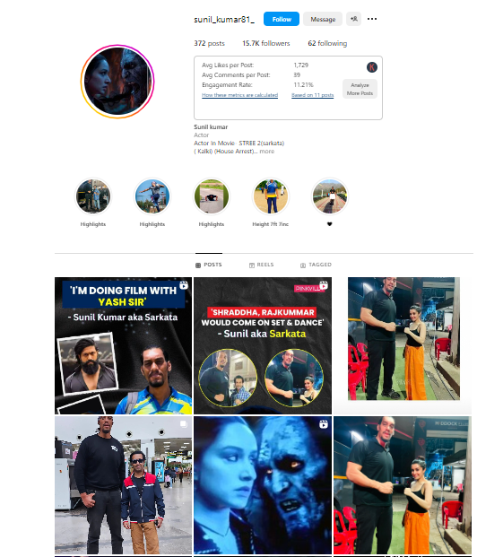 जब स्त्री 2 रिलीज हुई थी, तो उस समय हर कोई ये जानने के लिए बेकरार था कि 'सरकटे' का किरदार किसको ध्यान में रखकर बनाया गया है। जैसे ही लोगों को ये पता चला कि वह एक्टर सुनील कुमार हैं, तो लोगों ने उनके बारे में सर्च करना स्टार्ट कर दिया, जिसका फायदा कहीं न कहीं उनकी सोशल मीडिया फैन फॉलोइंग में भी देखने को मिला।
