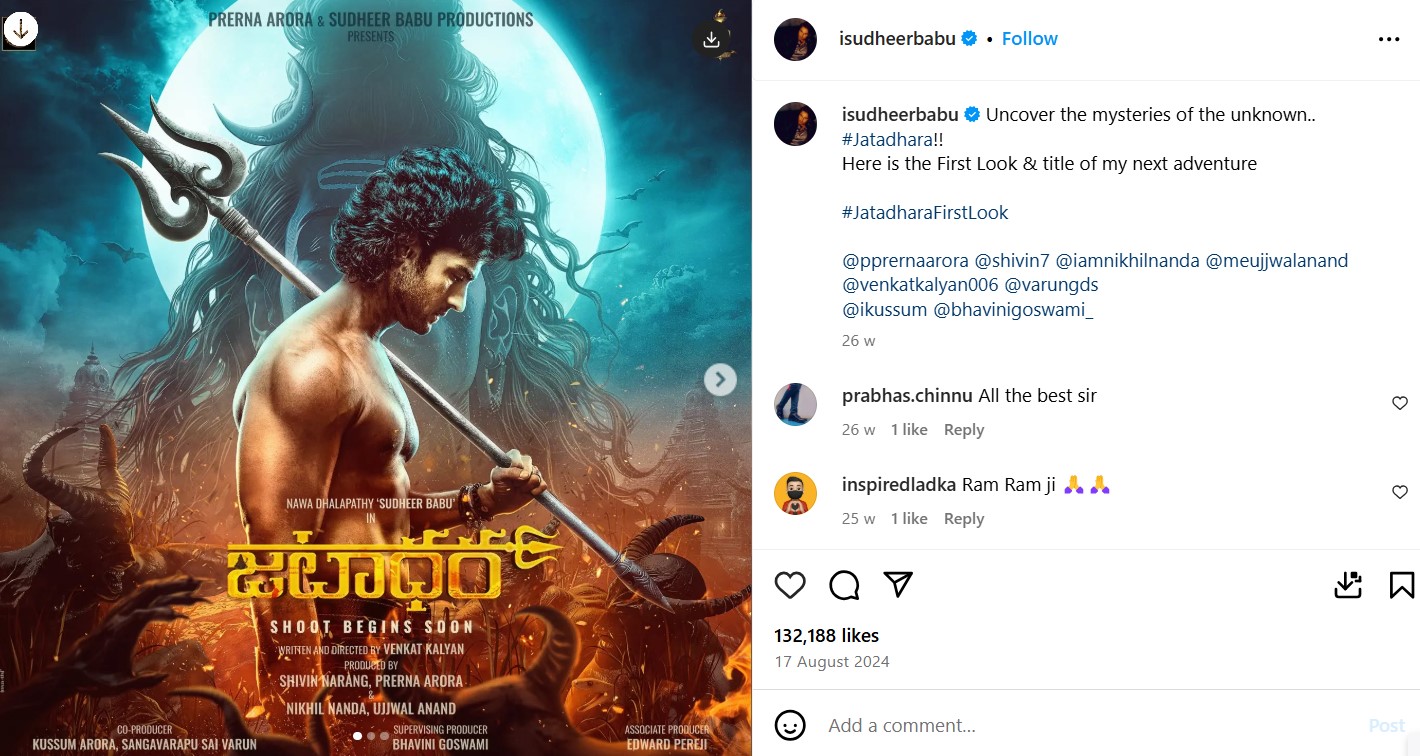शुरू हुई ‘जटाधारा’ की शूटिंग, Sudheer Babu निभा रहे लीड रोल, Bigg Boss 18 की ये कंटेस्टेंट भी आएंगी नजर