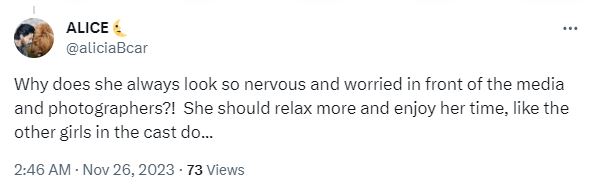 सुहाना खान और अगस्त्य नंदा दोनों को ही वैसे तो ट्रोलिंग का सामना करना पड़ा, लेकिन अधिकतर लोगों के निशाने पर शाह रुख खान की बेटी रहीं। एक यूजर ने लिखा, "मीडिया और फोटोग्राफर्स के सामने सुहाना खान हमेशा नर्वस और चिंतित क्यों हो जाती हैं? उन्हें रिलेक्स रहना चाहिए और अपने इस समय को एन्जॉय करना चाहिए, जैसे दूसरी लड़कियां और कास्ट कर रही है"।
