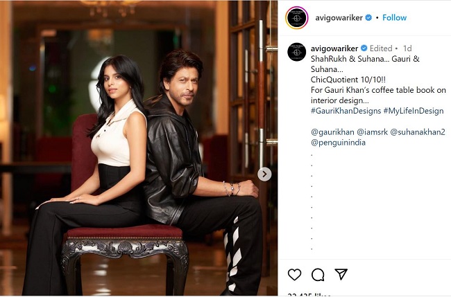 तस्वीरें शेयर करते हुए फोटोग्राफर अविनाश गोवारिकर ने लिखा है, 'शाह रुख और सुहाना, गौरी और सुहाना.. 10 में से 10।' इसके साथ जानकारी दी गई है कि यह फोटोशूट गौरी खान की कॉफी टेबल बुक के लिए किया गया है जो कि इंटीरियर डिजाइन पर आधारित होगा। आईपीएल 2023 के व्यस्त शेड्यूल से सभी ने अपना समय निकालकर यह फोटोशूट कराया है।