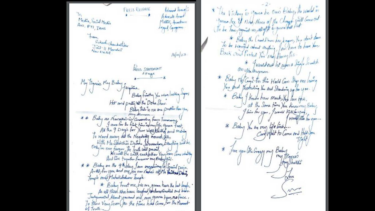 ये सिर्फ मैं अपने स्वार्थ के लिए नहीं कर रहा, बल्कि आपकी भलाई के लिए ऐसा करने जा रहा हूं। मां शक्ति हमारा साथ देगी, अपने आशीर्वाद के रूप में। मेरा भरोसा है एक दिन सब कुछ ठीक हो जाएगा मेरी बेबी।'' इस तरह की तमाम बातें सुकेश चंद्रशेखर ने जैकलीन फर्नांडिस के इस लेटर में लिखी हैं।