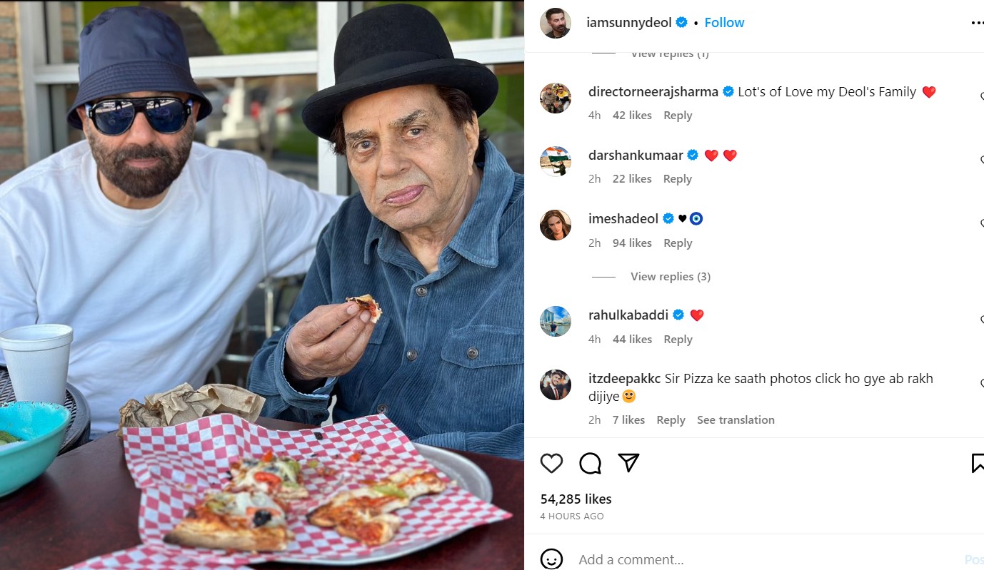 अमेरिका में पिता और पिज्जा के साथ सनी देओल ने स्पेंड किया क्वॉलिटी टाइम, ईशा देओल के कमेंट ने खींचा ध्यान