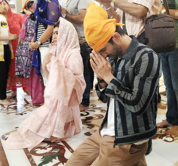आप देख सकते हैं इस तस्वीर में दोनों काफी भक्ति भाव में नज़र आ रहे हैं। सुशांत और कृति आम दर्शनार्थियों की तरह ही गुरूद्वारे गए और वहां वाहेगुरु को नमन किया और अपनी आने वाली फ़िल्म की कामयाबी के लिए दुआ मांगी।
