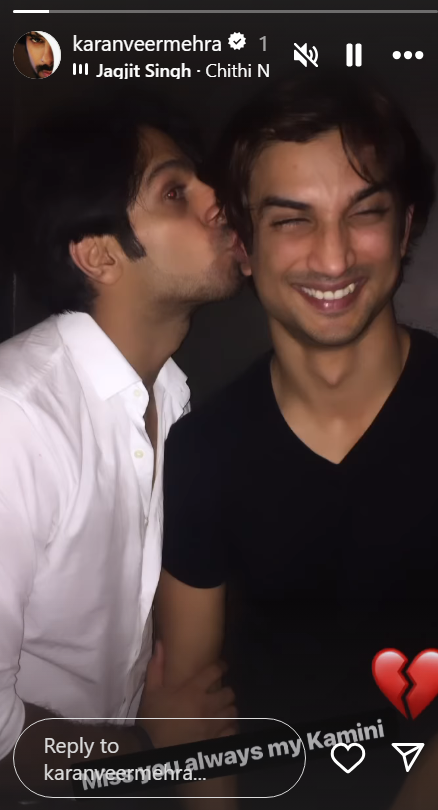 पवित्र रिश्ता में सुशांत के साथ काम कर चुके करणवीर मेहरा ने एक्टर के साथ एक फोटो शेयर की। वहीं, उन्होंने कैप्शन में लिखा कि मिस यू।
