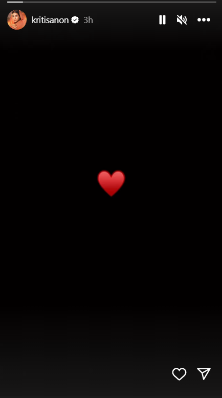सुशांत की एक्स-गर्लफ्रेंड कृति सेनन (Kriti Sanon) ने अपनी इंस्टा स्टोरी पर कुछ नहीं लिखा बस ब्लैक बैकग्राउंड के साथ एक रेड हार्ट बनाया है। इसी के साथ उन्होंने बैकग्राउंड में फिल्म 'राब्ता' का गाना भी शेयर किया है। ऐसे में कयास लगाए जा रहे है कि उन्होंने यह पोस्ट सुशांत के लिए ही किया है।