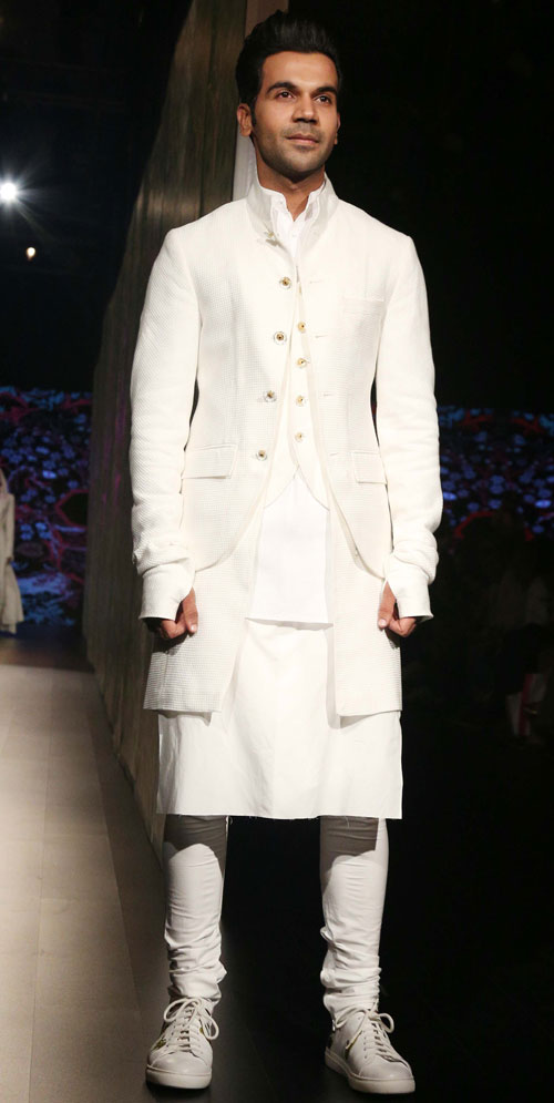 सिर्फ अभिनेत्रियां ही नहीं अभिनेता राजकुमार राव भी यहां रैम्प पर चलते हुई दिखाई दिए। व्हाईट कुर्ता और सूट का कॉम्बिनेशन राजकुमार पर काफी अच्छे लग रहे हैं। बता दें कि राजकुमार डिज़ाइनर राजेश प्रताप सिंह के ऑउटफिट में हैं। राजकुमार ने रैम्प पर चलने के अपने अभिनय के बारे में बात करते हुए कहा कि जब भी मैं कुछ हटके करता हूं तो मुझे बहुत अच्छा लगता है और रैम्प पर चलकर भी मुझे ऐसा ही महसूस हो रहा है। राजकुमार 31 अगस्त को रिलीज़ होने वाली फ़िल्म 'स्त्री' में श्रद्धा कपूर के साथ दिखाई देंगे।
