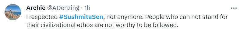 एक और ने कहा, "अब मैं सुष्मिता की और रिस्पेक्ट नहीं करती। जो लोग अपनी सभ्यता के लिए खड़े नहीं हो सकते, वे फॉलो करने लायक नहीं हैं।" कुछ लोगों ने उन्हें बॉयकॉट करने के लिए भी आवाज उठाई।