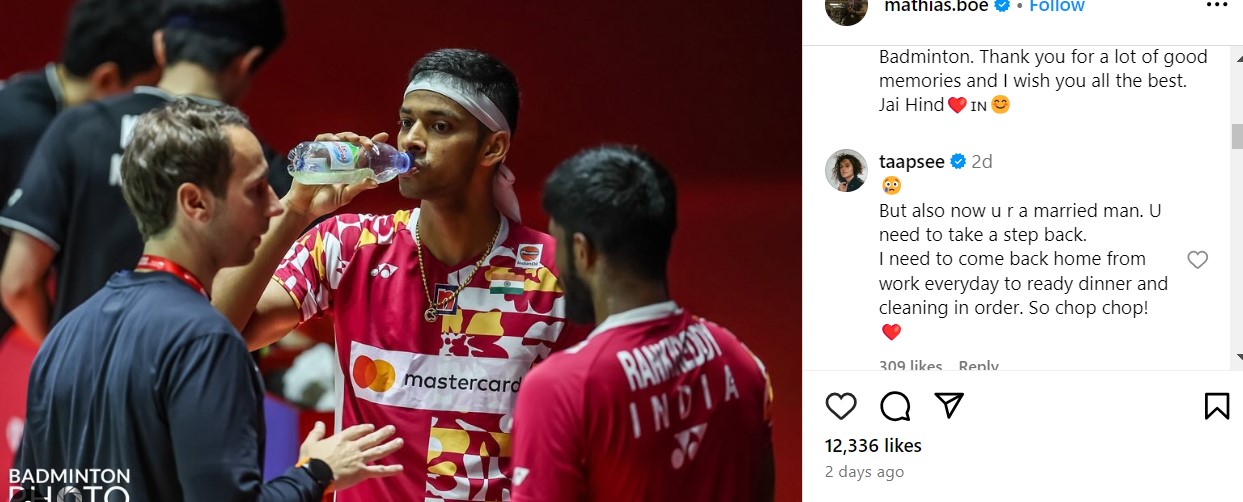 मैथियास के इस मैसेज पर खेल जगत से कई लोगों ने रिप्लाई किया। हालांकि, इन सबमें सबसे हटके जवाब तापसी पन्नू का आया। उन्होंने अपने कमेंट से मैथियास को घर गृहस्थी की याद दिला दी।