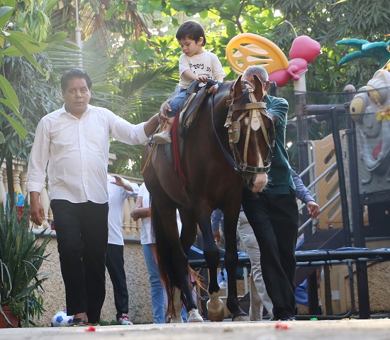 मुंबई। देश ही नहीं संभवतः दुनिया के सबसे लोकप्रिय स्टार किड्स तैमूर अली ख़ान Taimur Ali Khan की नयी तस्वीरें सामने आई हैं, जिनमें वो घुड़सवारी का आनंद लेते नज़र आ रहे हैं। तैमूर के पिता सैफ़ अली ख़ान Saif Ali Khan और मॉम करीना कपूर ख़ान Kareena Kapoor Khan इस मौके पर नज़र नहीं आईं।