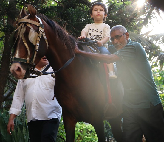आप देख सकते हैं तैमूर कितने आनंदित भाव से घुड़सवारी का मज़ा ले रहे हैं। इससे पहले भी कई बार तैमूर घोड़े पर यूं बैठ कर हॉर्स राइडिंग का आनंद लेते कैमरे में कैद हुए हैं। तैमूर की लोकप्रियता गज़ब की है और उनका हर अंदाज़ लोगों को खूब पसंद आता है। हाल ही में तैमूर अपने हेयरकट की वजह से सुर्ख़ियों में रहे।