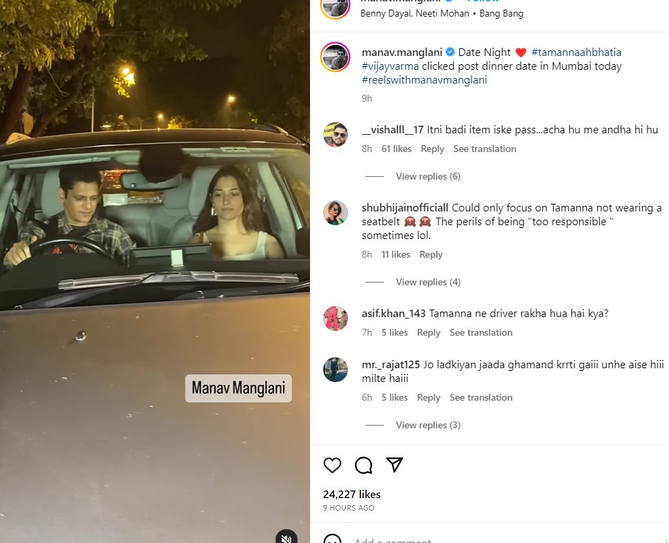 विजय वर्मा और तमन्ना भाटिया के डेटिंग की अफवाहों के बीच आए इस वीडियो पर फैंस ने खूब चुटकी ली है। एक ने कमेंट किया, ''तमन्ना ने ड्राइवर रख लिया है क्या।'' एक अन्य ने कमेंट किया, ''जो लड़कियां ज्यादा घमंड करती हैं, उन्हें ऐसे ही लोग मिलते हैं।''