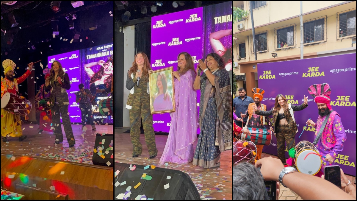 Tamannaah Bhatia College Photos बॉलीवुड एक्ट्रेस तमन्ना भाटिया की लेटेस्ट रिलीज वेब सीरीज जी करदा एक महीने बाद भी दर्शकों की फेवरेट बनी हुई है। इस सीरीज की सक्सेस के बाद तमन्ना भाटिया इसका जश्न मनाने अपने कॉलेज गईं। एक्ट्रेस ने खास अंदाज में अपने कॉलेज में एंट्री की और ढोल-नगाड़ों पर ठुमके लगाए। एक्ट्रेस ने इस बारे में बात भी की।