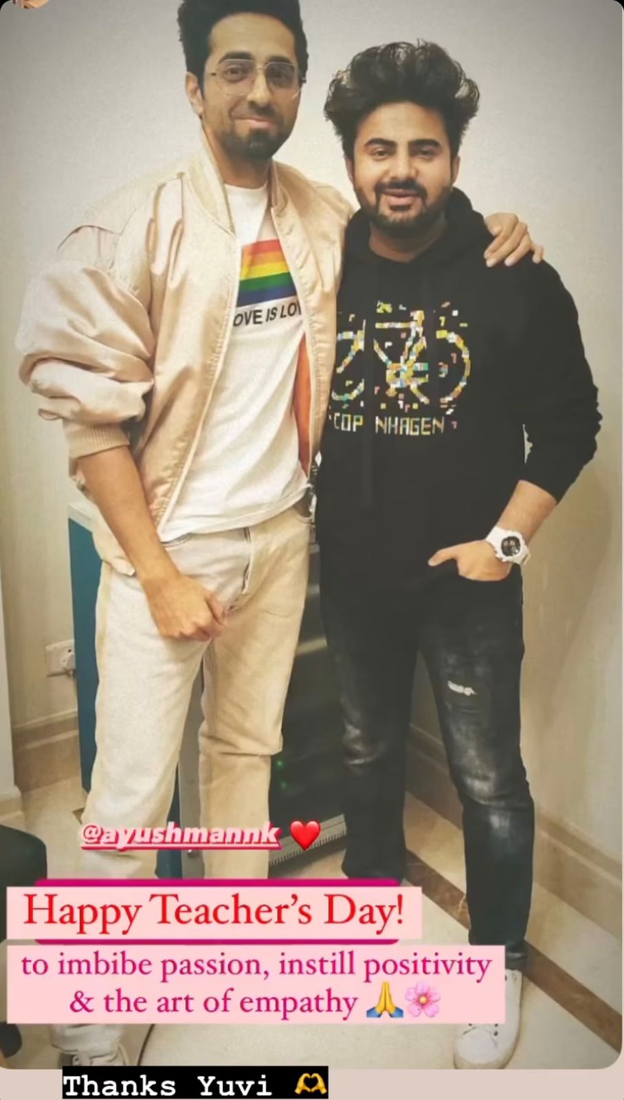 दिग्गज डायरेक्टर्स की तस्वीरों को शामिल रखा है और उन्हें शिक्षक दिवस की शुभकामनाएं दी हैं। इसके अलावा आयुष्मान खुराना ने भी सभी को टीचर्स डे की बधाइयां दी हैं।
