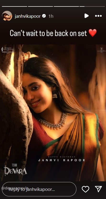 फिल्म से जाह्नवी का नया लुक सामने आते ही सोशल मीडिया पर ट्रेंड होने लगा। वहीं, एक्ट्रेस ने फोटो पर रिएक्ट करते हुए लिखा कि मैं सेट पर वापस आने का इंतजार नहीं कर सकती।