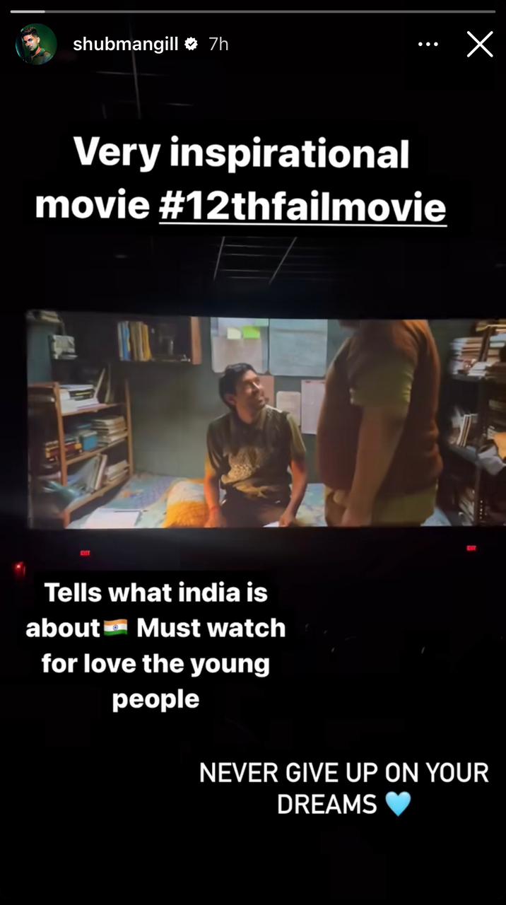 '12th फेल' को लेकर शुभमन ने लिखी बड़ी बात