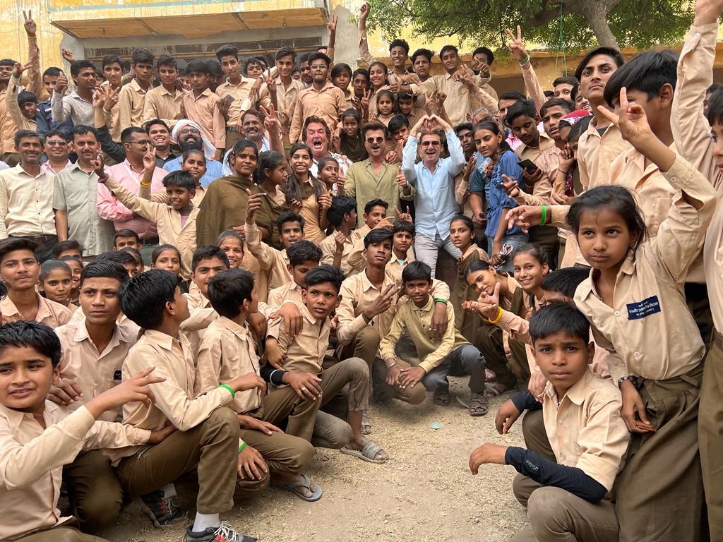 वहीं, एक और तस्वीर में दोनों कलाकार स्कूली बच्चों के बीच मस्ती करते हुए नजर आ रहे हैं। बच्चे भी दोनों कलाकारों को अपने बीच देखकर चीयर करते हुए दिख रहे हैं।
