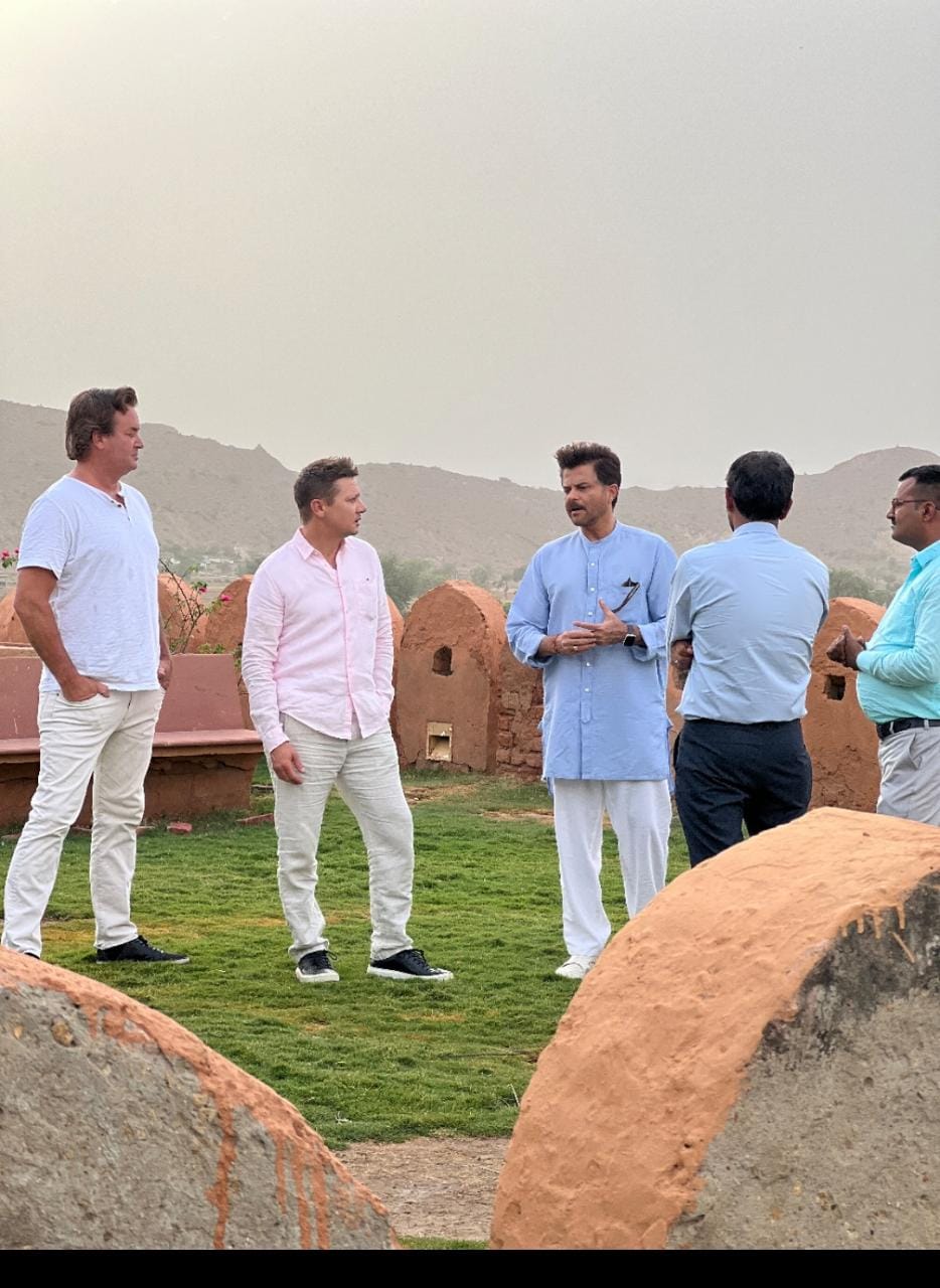 तस्वीर में अनिल कपूर आसमानी नीले रंग का कुर्ता शर्ट और सफेद पैंट पहने हुए नजर आ रहे हैं। वहीं, जेरेमी पिंक कलर की शर्ट और क्रीम कलर की पैंट पहने हैं। दोनों कलाकार किसी हिस्टोरिकल लोकेशन पर गहन चर्चा में मशगूल नजर आ रहे हैं।