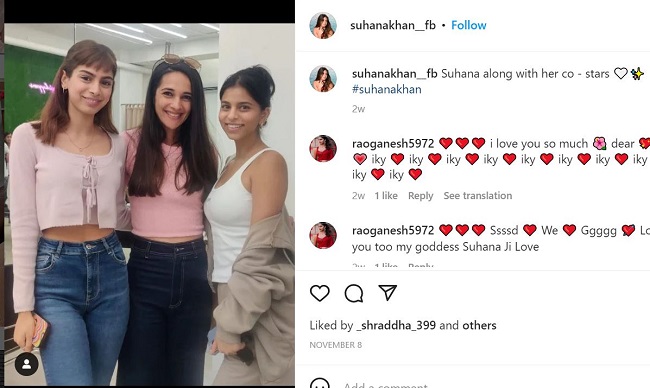 The Archies Photos तारा शर्मा ने सुहाना खान और खुशी कपूर की भी तस्वीरें शेयर की थी। इसके साथ उन्होंने लिखा था कि वह बहुत ही प्रोफेशनल है। द आर्चीज नेटफ्लिक्स पर 2023 में रिलीज होगी। यह फिल्म द आर्चीज कॉमिक्स पर आधारित है।