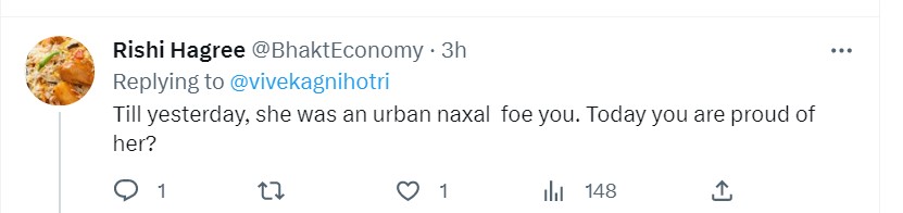 विवेक के इस ट्वीट ने कुछ लोगों को हैरान कर दिया क्योंकि वो अब तक कई मौकों पर दीपिका की निंदा कर चुके हैं और उन्हें अर्बन नक्सल बता चुके हैं। विवेक के ट्वीट पर रिएक्ट करते हुए एक यूजर ने कहा, "कल तक आपके लिए वो अर्बन नक्सल थी। आज आपको उनके ऊपर गर्व हो रहा है।" एक अन्य यूजर ने कहा, "ढोंग करने की भी सीमा होती है सर।"