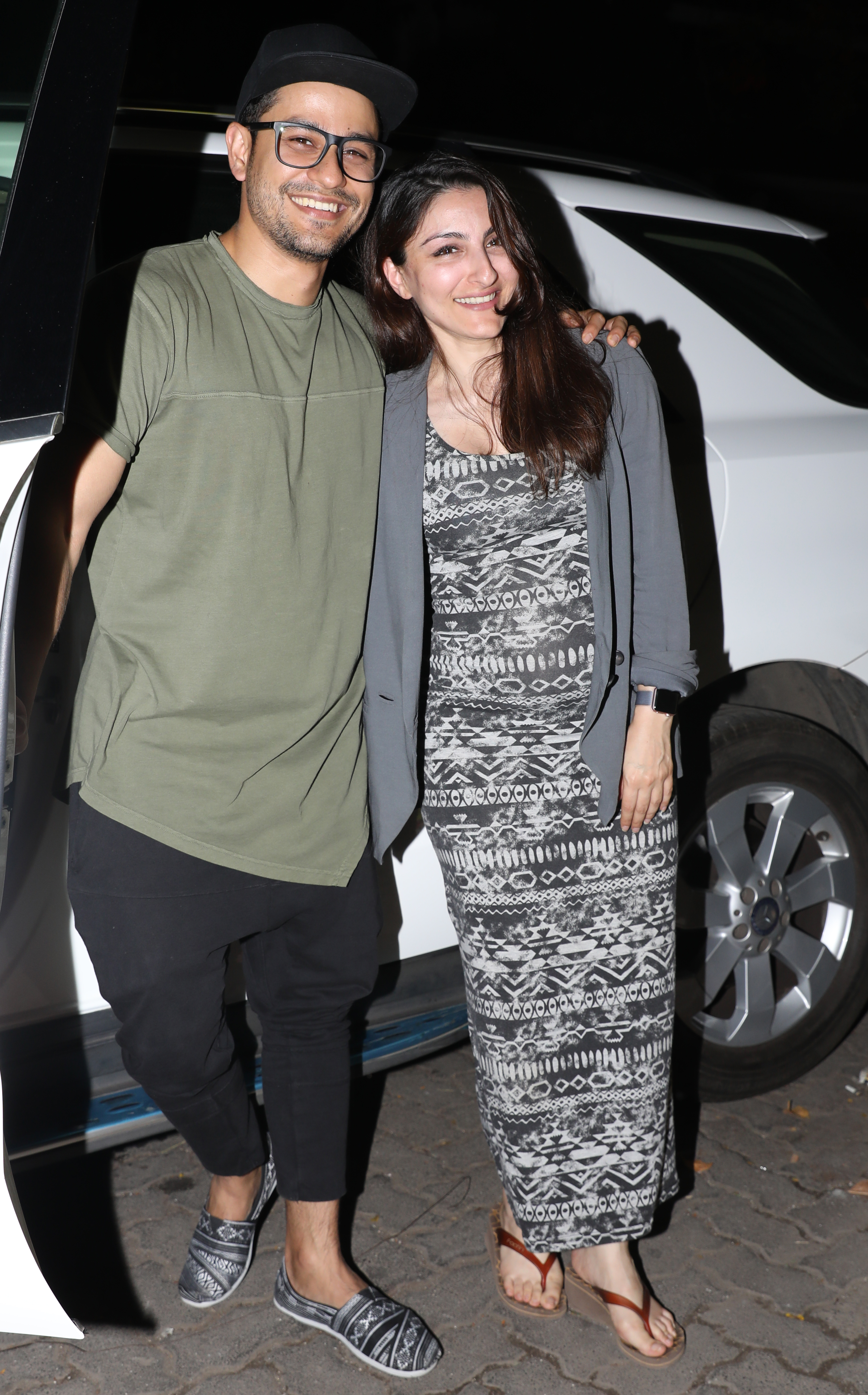 6. हमें सोहा का यह ऑउटफिट बहुत प्यारा लगा। लूज़ लॉन्ग मिडी ड्रेस और हेयरबैंड, स्टाइलिश एंड क्यूट का परफेक्ट कॉम्बिनेशन! अपने बेबी बंप और पति कुणाल के साथ देखिये कैसे पोज़ दे रही हैं।