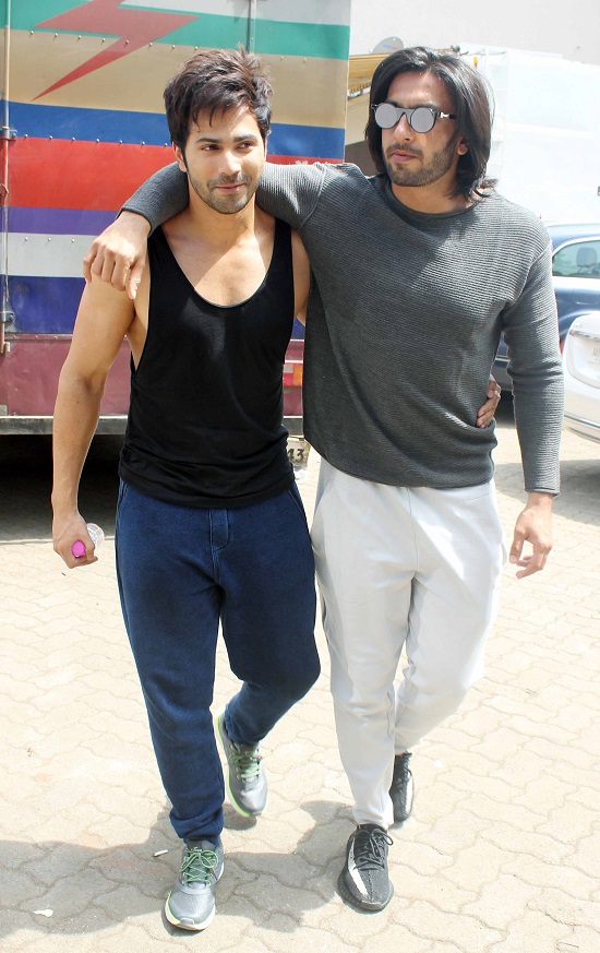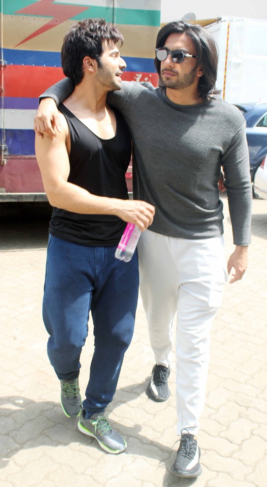 रणवीर सिंह ने वरुण धवन के गले में हाथ डाला हुआ था। यह इन दोनों के बीच की गहरी दोस्ती को दर्शाता है।