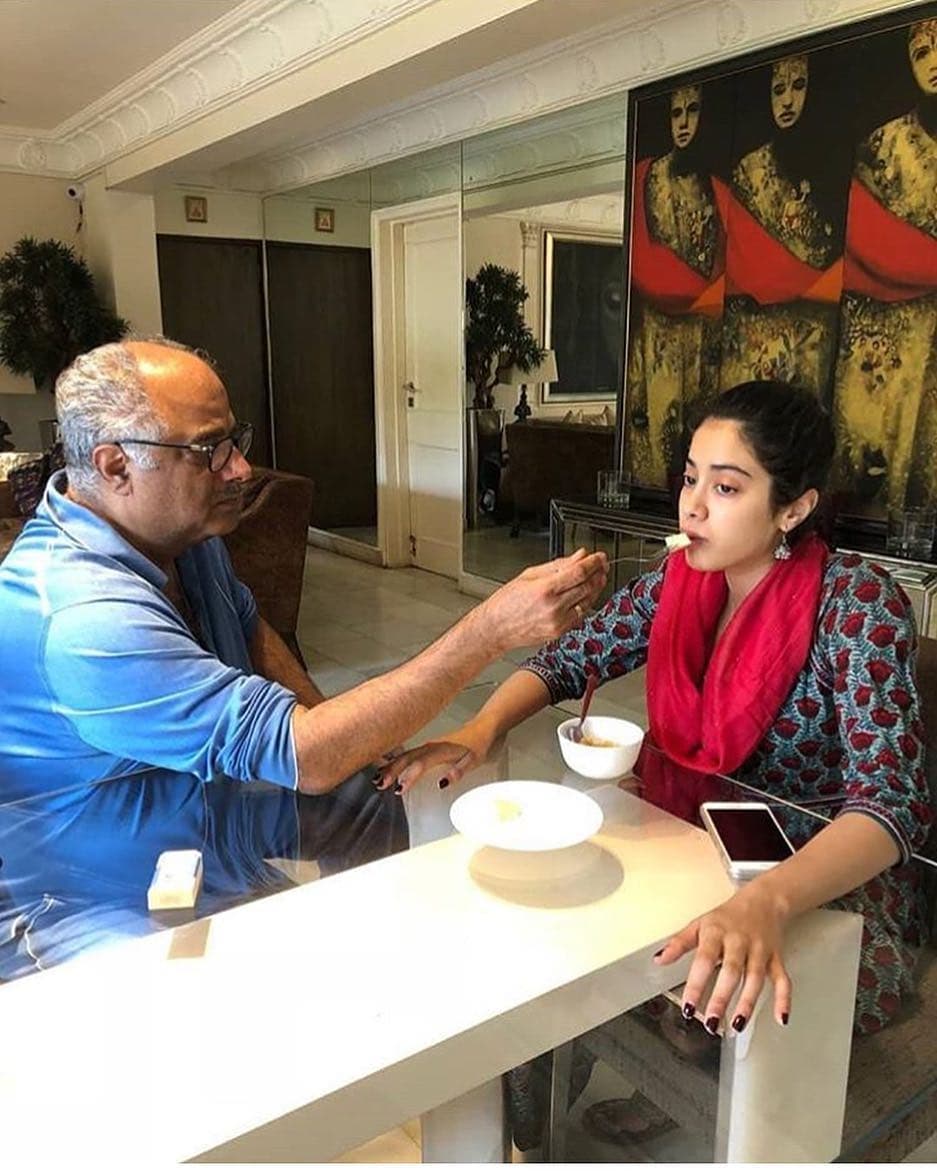 अभी कुछ दिनों पहले ही बोनी और जाह्नवी की एक बेहद प्यारी तस्वीर इन्टरनेट पर वायरल हुई थी जिसमें बोनी जाह्नवी को अपने हाथों से खाना खिला रहे हैं। दरअसल, हर दिवाली पर बोनी श्रीदेवी को अपने हाथों से खाना खिलाते थे और क्योंकि अब वो इस दुनिया में नहीं रही तो यह रस्म पिता बोनी ने बेटी जाह्नवी के साथ मनाई। यकीनन, यह तस्वीर आपके भी दिल को जरूर छुएगी-