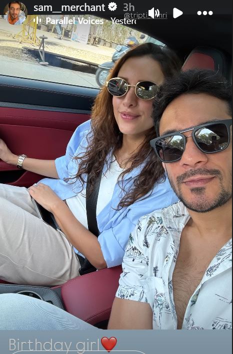 सैम मर्चेंट ने वीडियो के साथ एक तस्वीर शेयर करते हुए तृप्ति पर प्यार लुटाया है। तस्वीर में सैम, तृप्ति के साथ कार में सेल्फी लेते हुए नजर आ रहे हैं। इसे शेयर करते हुए उन्होंने कैप्शन में 'बर्थडे गर्ल' लिखा है।