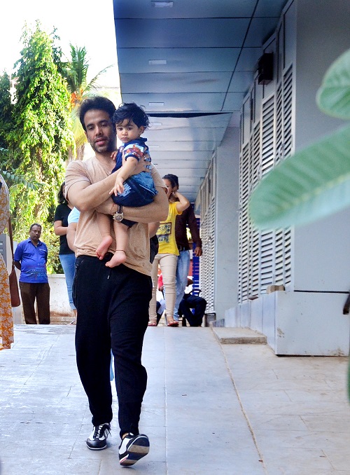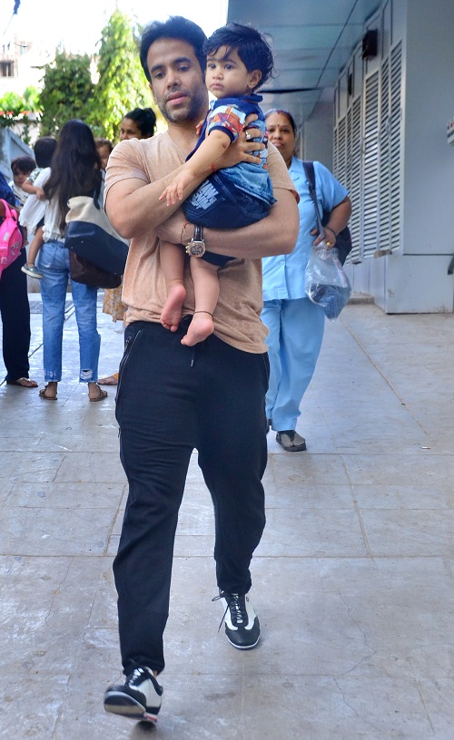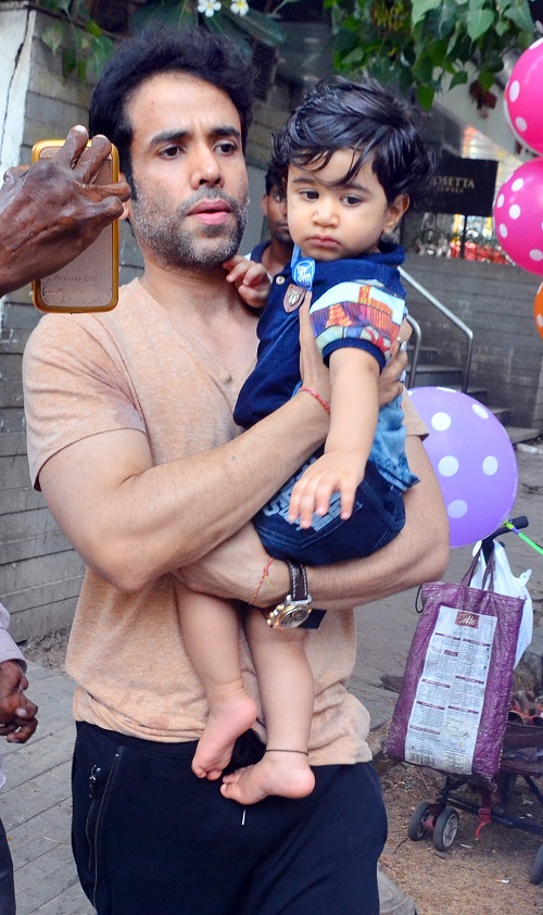 मुंबई। हम सब जानते है कि तुषार कपूर ने शादी नहीं की है। लेकिन, तुषार एक प्यारे से बेटे के पिता हैं। उनके बेटे का नाम है लक्ष्य। लक्ष्य का जन्म पिछले साल ही 1 जून को हुआ था। बीते गुरुवार उनके पहले जन्मदिन पर तुषार ने अपने घर कृष्णा पर एक शानदार पार्टी दी थी। बहरहाल, आप देख सकते हैं मंगलवार को तुषार अपने नन्हें बेटे लक्ष्य के साथ मुंबई के बांद्रा इलाके में स्पॉट किये गए।