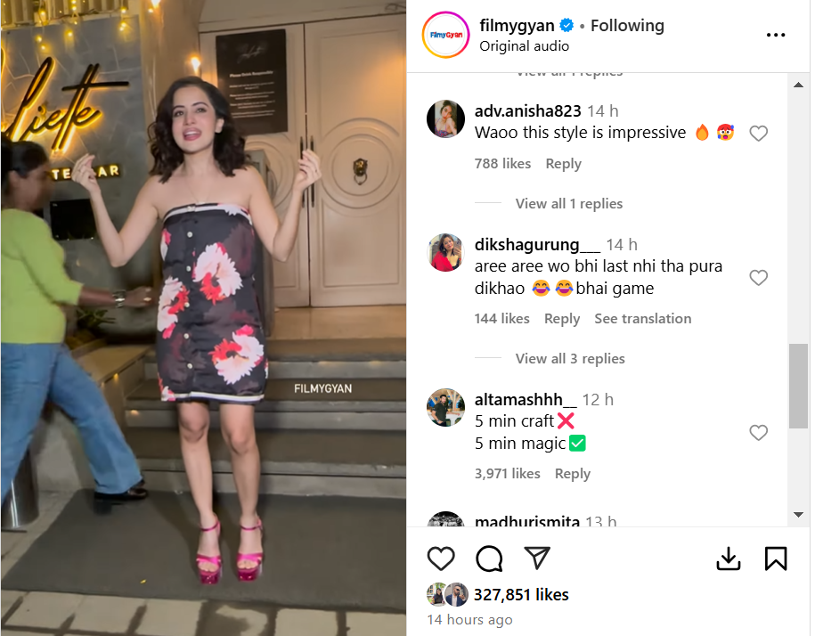 पैपराजी से बात करते हुए उर्फी कहती हैं कि हर बार की तरह इस बार भी उनकी कुछ अलग करने की कोशिश थी। वीडियो देखकर फैंस हैरान हो गए। हर किसी ने अपना माथा पकड़ लिया। एक तरफ जहां उर्फी के कुछ फैंस उनकी तारीफ कर रहे हैं तो वहीं कुछ लोग उनकी आलोचना भी कर रहे हैं। एक यूजर ने लिखा, “उर्फी की क्रिएटिविटी का लेवल दिन-ब-दिन बढ़ता जा रहा है।” दूसरे ने टिप्पणी की, “दीदी क्रिएटिव हो गई।” 'वह रियल लाइफ मैजिशियन है।'तीसरे ने कमेंट किया- 'उर्फी कुछ भी पॉसिबल बना सकती है। चौथे यूजर ने लिखा- लास्ट वाली ड्रेस ना हटाने के लिए, थैंक्स।'