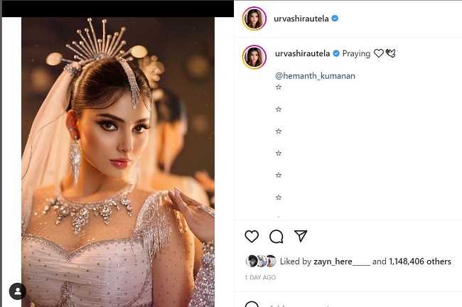 Urvashi Rautela Rishabh Pant फिल्म एक्ट्रेस उर्वशी रौतेला ने सोशल मीडिया पर एक नया पोस्ट किया है। इसमें उन्हें किसी के जल्द ठीक होने की कामना करते हुए देखा जा सकता है। इसके पहले भी उन्होंने एक पोस्ट किया था।