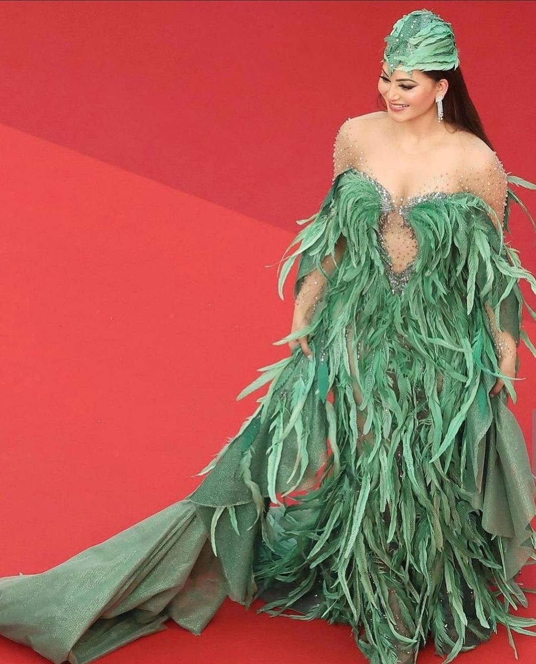 सोमवार यानी 22 मई को उर्वशी रौतेला का कांस रेड कारपेट से चौथा लुक सामने आया। इस दौरान वह वह ग्रीन कलर के हेवी फेदर गाउन पहने दिखाई दे रही है। इस गाउन के चारों तरफ हरे रंग के फेदर (पंख) लगे नजर आ रहे है। इसी के साथ उन्होंने सिल्वर कलर की ज्वेलरी कैरी की हुई है। यह ड्रेस डिजाइनर Ziad Nakad के स्प्रिंग समर 2023 कचुअर कलेक्शन से है।