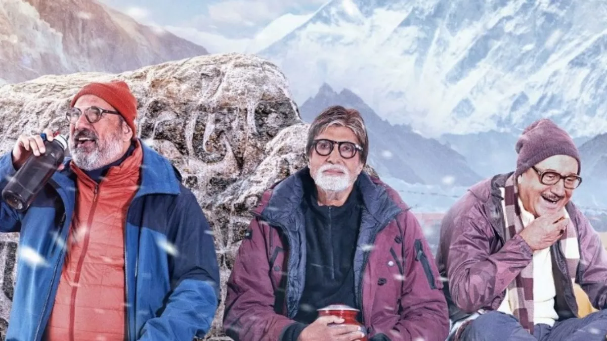 इस पोस्टर को महानायक ने अपने आधिकारी इंस्टाग्राम हैंडल पर शेयर किया है। पोस्टर में देखा जा सकता है कि तीन दोस्त चुनौतीपूर्ण ट्रेकिंग से ब्रेक लेने के बाद चट्टान के पास बैठे हुए दिख रहे हैं। जबकि पोस्टर में उनके पीछे हिमालय की शानदार चोटियां भी नजर आ रही हैं, जोकि बर्फ की चादर से ढ़की हुई हैं।