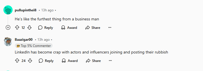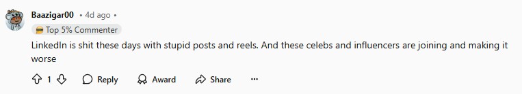 एक यूजर ने कमेंट किया- यह प्रमोशन के लिए है लेकिन अगर यह आइडिया काम कर गया तो बाकी लोग भी उनके नक्शेकदम पर चलेंगे। लोगों ने पहले ही लिंक्डइन पर डांस करके इंस्टाग्राम रील में बदल दिया है।