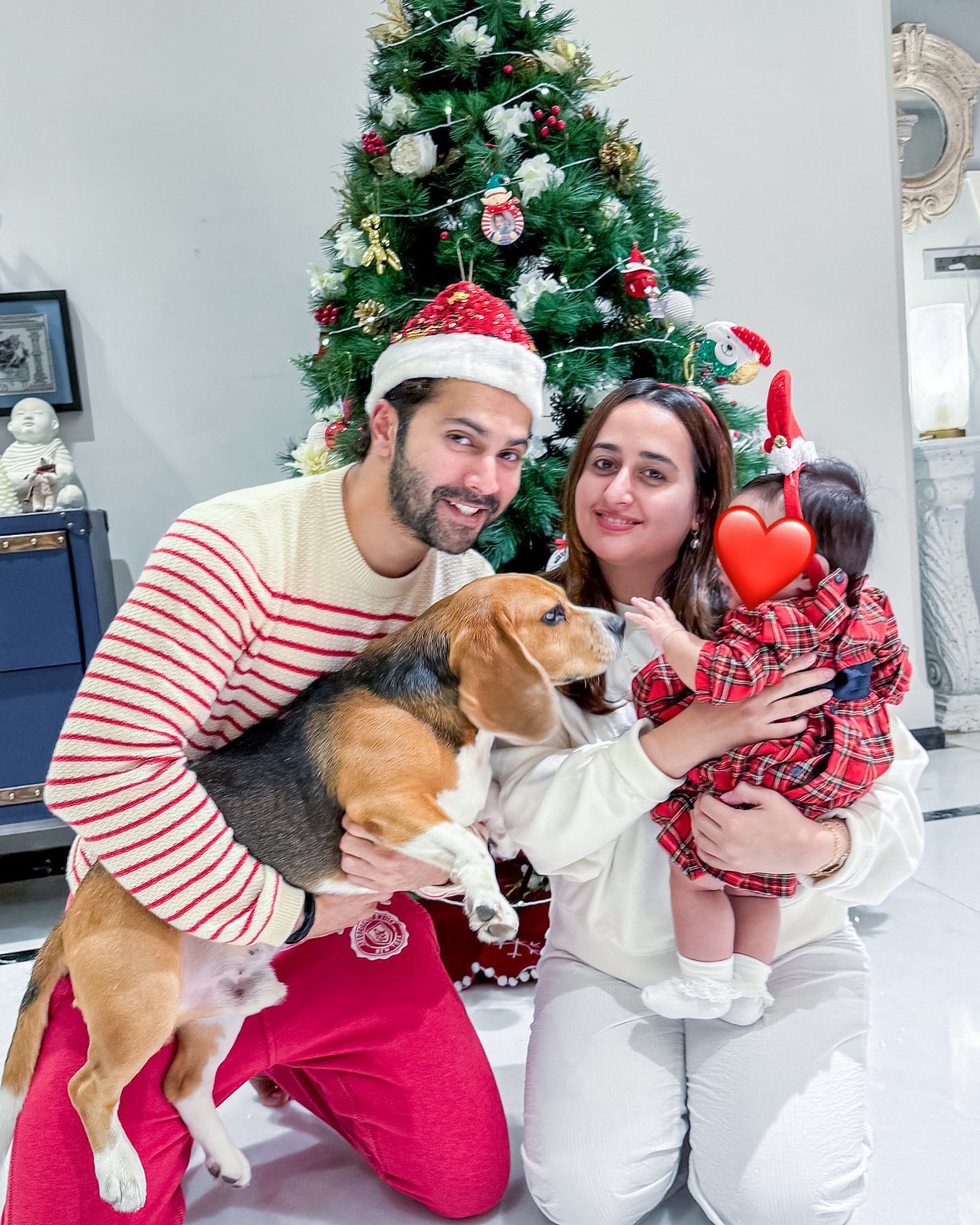 क्रिसमस के मौके पर वरुण ने फैंस को बड़ा तोहफा दिया। उन्होंने पहली बार सोशल मीडिया पर बेटी लारा की झलक दिखाई है। तस्वीर में वरुण के साथ उनकी पत्नी नताशा भी नजर आ रही हैं। एक्टर की पत्नी ने गोद में लारा को उठाया हुआ है। हालांकि, उन्होंने रेड हार्ट इमोजी से बेटी का चेहरा छिपा दिया है। वहीं, वरुण गोद में अपने डॉग को उठाए नजर आ रहे हैं। इसके साथ अभिनेता ने कैप्शन में लिखा, 'मी एंड माई बेबीज मेरी क्रिसमस।'